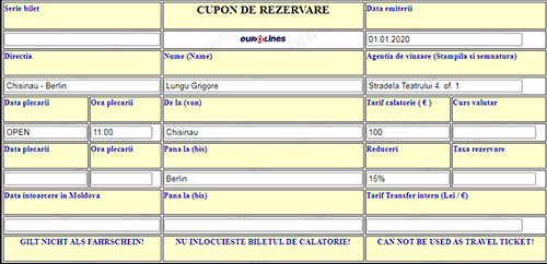 To purchase tickets with a change in the EU, please contact the offices of the company "EUROLINES MOLDOVA"